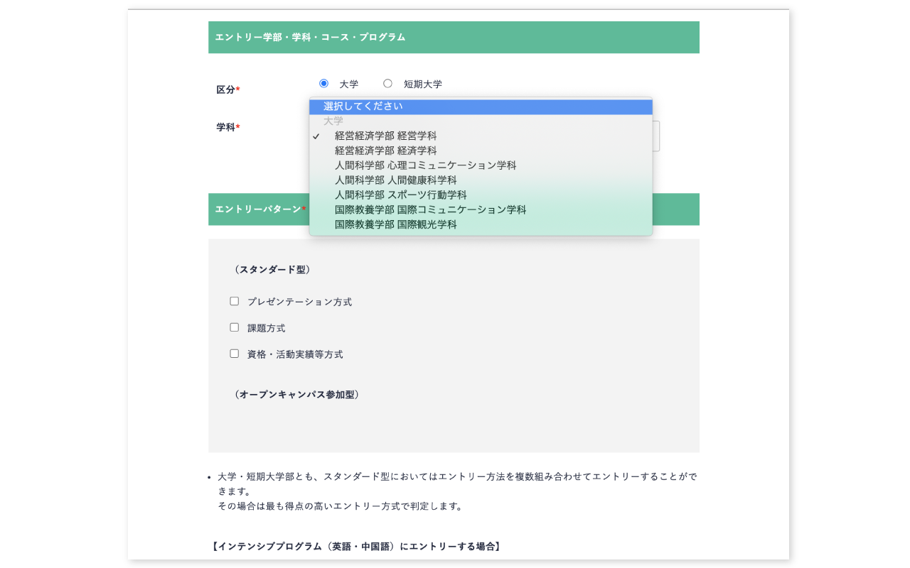 - 志望学科・エントリー方式・事前面談の日時などを選択してください。